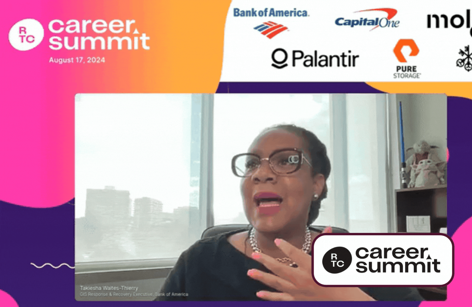 One-day virtual career fair for women in tech. Offers resume reviews, direct recruiter connections, keynotes, and networking with 25+ top companies. Free to attend.